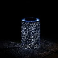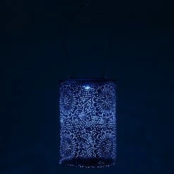 Reminiscent of punched tin home accents, the Soji Stella is an easy and affordable way to dress up any outdoor space. The metallic Tyvek finish shines brilliantly during the day and a high-powered duel LED emits beads of light in a charming pattern at night. Cylindrical design and flat bottom allows for either hanging or table top use.
