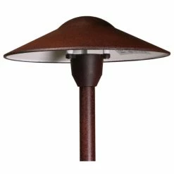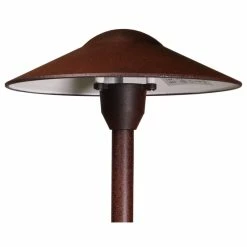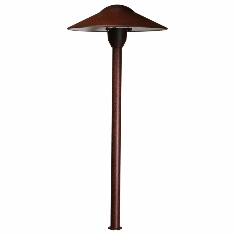 Best Pro Lighting’s contractor grade Mushroom Pathway Light in Powder Coated Rust Finish will give a timeless and beautiful accent to your garden area or pathways. Gives off light in a 360ยฐ spread so you can place it centrally in any areas that you would like to be illuminated. With a solid cast aluminum construction in a powder coated finish that is weather resistant. The best applications for these fixtures are: along pathways, low level perimeter lighting, garden bed lighting, area lighting, accent lighting and walkway lighting. These Mushroom Path lights feature an easy relamping hat. Includes a Ground Stake. This fixture requires the usage of a Low Voltage (12-Volt) lighting transformer. Wire nuts and connectors are not included.