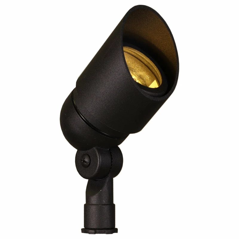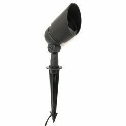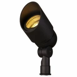 Best Pro Lighting’s professional quality, low voltage Directional Bullet Light in Rust or Black with powder coated finish will give a vibrant illumination to all of your larger areas, with their sleek and sturdy design, weather resistant construction and a traditional cylindrical housing style. The best applications for these fixtures are: tree under-canopy lighting, highlighting fountains, medium to large statues, architectural areas, spot lighting small bushes, hedges and mortar walls and exterior home illumination. Best Pro Lighting’s Directional Bullet comes with a tempered and heat resistant clear glass lens, 360ยฐ adjustable shroud and a ground stake. This fixture requires the usage of a Low Voltage (12-Volt) lighting transformer. Wire nuts and connectors are not included.