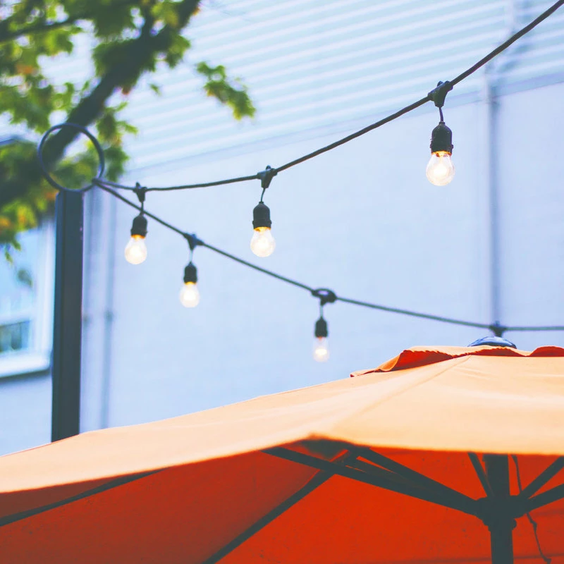 PATIO LIGHTS WITH EDISON FILAMENT BULBS CREATE GREAT VINTAGE “ITALIAN STYLE” BISTRO AMBIENCE: String Brightech Ambience Pro market lights on a pergola to set the mood in your patio. These Edison strings with exposed filaments give off a warm glow reminiscent of old-world bistros The lights are bright enough to BBQ by without a flashlight, but dim enough not to overwhelm. Perfect for entertaining or a romantic dinner!.