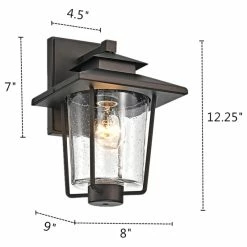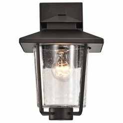 This is a beautifully designed out door wall sconce. This sconce features a clear seedy glass globe, surrounded by 4 bronze rods in a rubbed bronze finish. If you’re looking for a cute wall sconce to decorate and accentuate pivotal points on your home, this is the wall sconce for you! The fixture takes one 100W bulb and is compatible with flourescent, incandescent and LED bulbs. All of our wall sconces are UL listed, and dry, damp and wet listed, to survive all weather conditions, hot and cold.