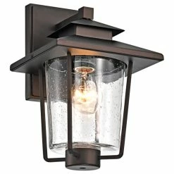 This is a beautifully designed out door wall sconce. This sconce features a clear seedy glass globe, surrounded by 4 bronze rods in a rubbed bronze finish. If you’re looking for a cute wall sconce to decorate and accentuate pivotal points on your home, this is the wall sconce for you! The fixture takes one 100W bulb and is compatible with flourescent, incandescent and LED bulbs. All of our wall sconces are UL listed, and dry, damp and wet listed, to survive all weather conditions, hot and cold.