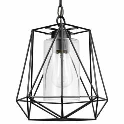 Whether you have a balcony, a rooftop, or an entire backyard to work with The Sansa Collection by Globe Electric can help you utilize your outdoor space. Each piece in this collection has a geometric cage design to bring a modern element to your home while adding texture and style. This 1-Light Pendant is simply gorgeous and with a clear glass shade surrounded by the geometric shapes made with its signature cage body, you can place this light anywhere you need a great statement piece. But don’t worry, it’s just the perfect size to hang outside as well as inside for a completely unified and cohesive look. Outdoor living never looked so good!