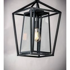 This frame inside a frame design is the perfect update to this classically inspired outdoor lantern. Durable stainless steel construction is finished in Black and supports an inner frame of Clear panels of glass for a crisp and clean appearance.