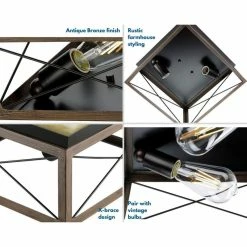The Briarwood collection features a classic pattern commonly found on barn or farmhouse doors and gates. The simple geometric form features a faux-painted wood enclosure to frame vintage-style light bulbs. A rich Oak and Antique Bronze finish combination. Two-Light flush mount.