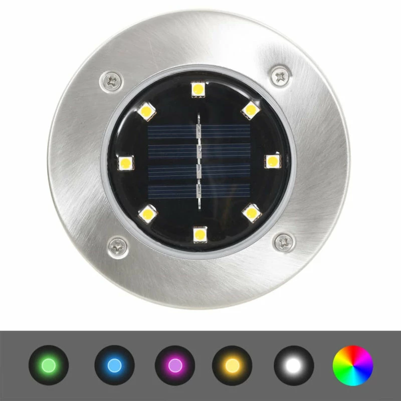 These solar ground lights are perfect lightings for gardens, patios, paths, and balconies. Each solar lamp is equipped with a Ni-MH battery charged by the sunlight. During the day, the lamps automatically absorb the sunlight energy and convert it into electricity to charge the battery. There are eight LED beads in each lamp, which emits bright light in the evening. The light automatically turns on when it gets dark and turn off during the daytime. These solar lamps are environmentally friendly, energy saving, and require little maintenance. You do not need to pay the electric bill for the light since it is solar powered. The solar lamps are designed to be water-resistant and suitable for daily outdoor use.
